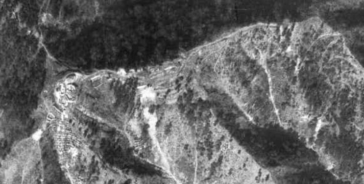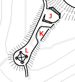 比較的初期に構築された高射砲陣地には、対空機銃1個中隊(4門)が付属していることが多いが(広島の二葉山と向洋、長崎の金比羅山、大牟田、小倉の沖田)、今回探索した範囲内ではそれらしい場所は見当たらなかった。ただ軍道の通る東側の尾根の付近にそれっぽいものが写っているので、もしかしたらこれかもしれない。