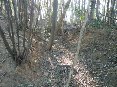 南西には平坦地A2がある。建物があったようで、低い切り岸が直線的になっている。A1の周囲には窪みA4〜A6があるが、判りやすい写真が撮れていなかったので上げていない。
