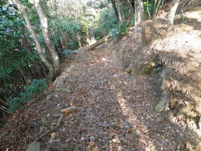 この平坦地の北端中央部から登山道が下っているが、本来の道は兵舎Kの西側から出ている道かと思われる。