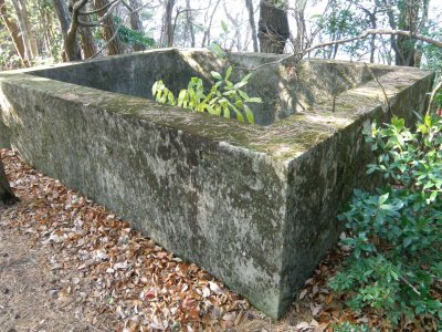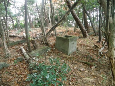 敷地の北と南は控え室や倉庫らしく、出入口と思われる辺りには敷石が設けられている。また建屋の4隅には天水用と思われるコンクリート水槽がある。外寸70cm四方、内寸50cm四方で、東側の2つは横に転がっている。