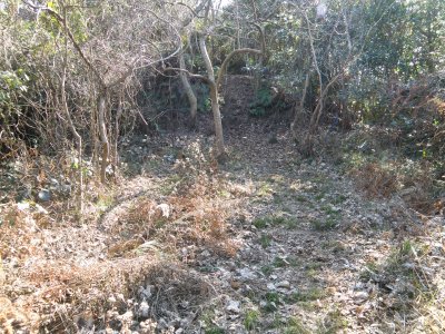 指揮所平坦地を北上に登ると、探照灯円形窪地Rがある。南東から指揮所平坦地へと降りる道がある。