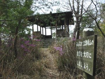 東屋のある平坦面の南西下にある平坦面Kには、兵舎跡と思われる瓦礫が散乱している。また尾根の南東下側に降りる道が2ヶ所あり、更に車道と平行して旧道が走っている事を考えると、この南東斜面にも何らかの構造物があったものと思われる。藪が酷かったので辛うじて削出し平坦地Lを発見しただけだったが、車道脇にある平坦地Mも、斜面の削られ方からして何らかの施設だった可能性がある。