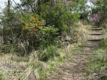 左:旧軍道と削出し平坦面L、右:削出し平坦面M