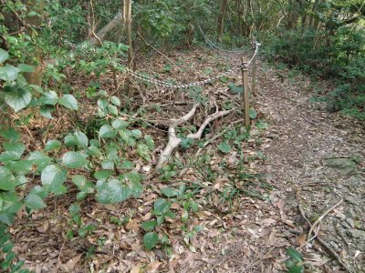 南西へと伸びる尾根上にも電探室Oがある。他2つと異なる部分は多いものの、出入口とコンクリート基礎は同じものがある。