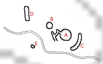 中心となる円形窪地Aは直径約5mで、大きさから探照灯の物かと思われる。中央には50cm四方の岩があるが、探照灯の基礎らしきものは見つからなかった。このAの東側には三日月形の窪地Cがあるが、用途は不明。