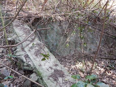 崩落部Gには、土留のようなコンクリート構造物があるが、用途が全くわからない。畑には関係が無さそうなので、砲台関連の遺構と見てもいいかもしれない。