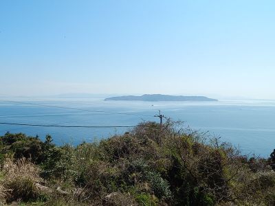 島の北東にある灯台を目指す。灯台まで道が付いているのだが、山に入ってからはイノシシによる掘り返しや、崩落で歩き難くなっており、スニーカーだと辛い。また畑跡で道を見失いやすくなっている。
