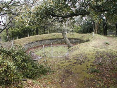 現在の電波標定機壕の南隣と南東隣に12cmカノン砲座があったようだが、南隣の砲座のコンクリート製砲床がむき出しになっている他は良くわからなくなっている。