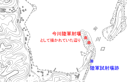 英文資料の地図には、陸軍の試射場付近に15cm砲が2門と25mm三連装機銃1基が描き込まれているが、その付近は洲になっている。同行してくださった淡路在住のHさんによると、この洲は台風の時などには海没してしまうそうで、そうなるとここに砲台が築かれていたとは考え難い。洲の所々に波で現れて角の取れたコンクリート片が幾つも転がっているものの、中には明らかにテトラポットの破片も含まれており、このコンクリ片が当時の基礎や掩体の破片なのか、それとも壊れた堤防やテトラポットの破片なのかは不明である。