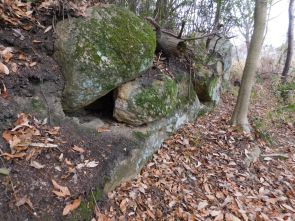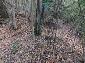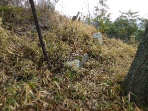 左:北の郭の南縁の石垣跡、右:同左の続き