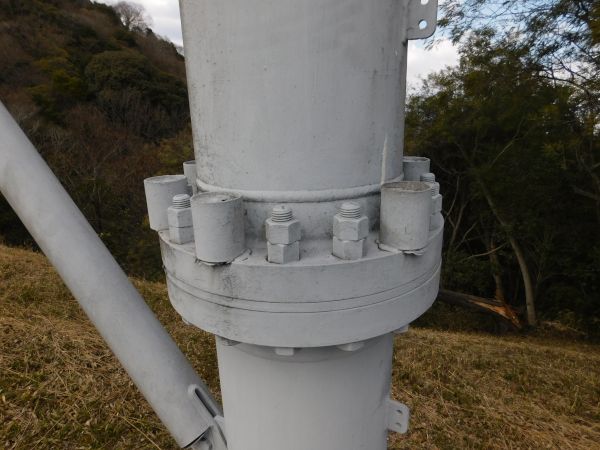 神水城の鉄塔のボルト。簡単に外せないようにしてある