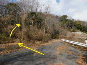 鷲羽山スカイラインの途中に展望台のような場所があり、その駐車場に車を停めた。そこから山の入り口まで、歩道もガードレールも無いスカイライン脇を歩くのだが、スピードを出す車が多いので注意が必要。