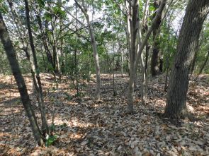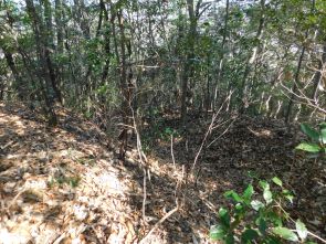 左:郭内部、あまり平坦ではない、右:南の堀切