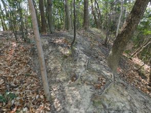左:郭の西側の縁、右:南側だったけ、の土塁?