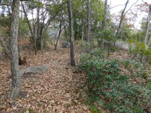 十数年前に海軍の倉敷航空隊の聴音照射所を探索しに行ったことがあるが、戦中は軍事施設、戦後には畑と、二度も手入れを喰らっているので、現在残っている平坦地も石垣も、いつの時代の物かわからない。