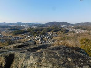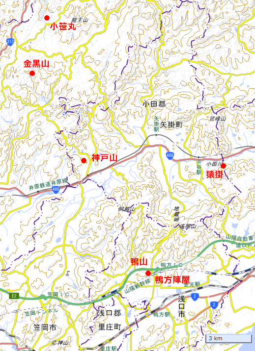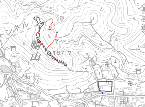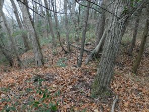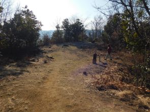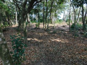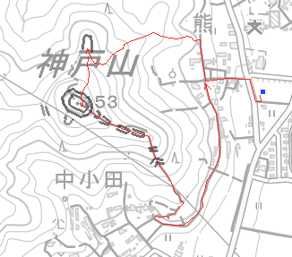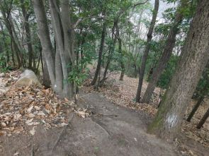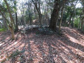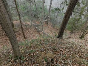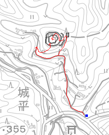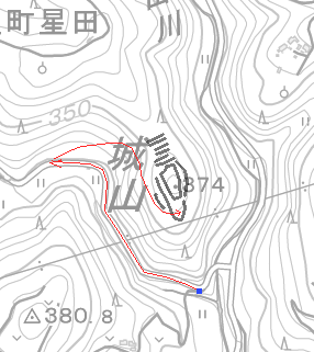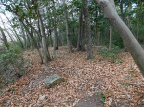 山頂に郭と帯郭、東の尾根上に幾つかの郭があるだけのシンプルな縄張。北東麓から登り南東麓へと降りたが、南東側の方が道が良かった。ただ南東側の登り口は分かりにくい。