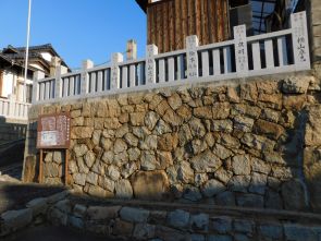 黒住教の施設と公園等になっている。南面と東面に石垣があるが、その多くは後に組み直されたような雰囲気がある。黒住教の施設内に石組の古い井戸が残っている。