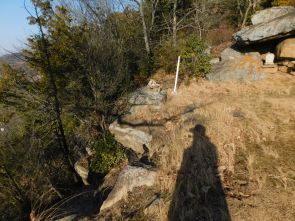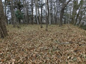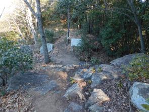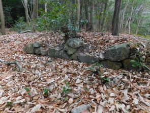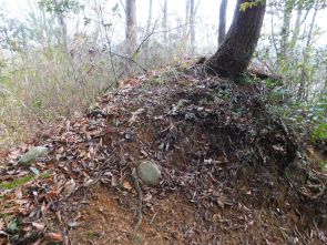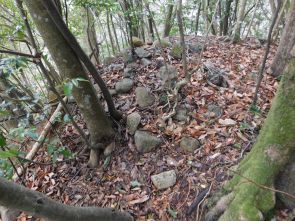 北東麓から登ったが、登りも下りも北西麓からのルートの方が楽である。険しい山の上に、よくあれだけの広い平坦地を作ったものだと感心させられた。複数の郭を横切るように列石が置かれているが、恐らくは後世に境界線として置かれた物ではないかと思われる。主郭の南下にある大堀切へ降りるのが大変だった。