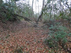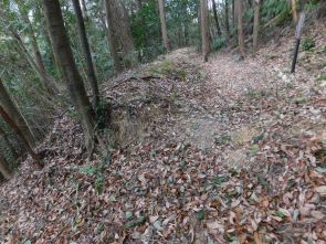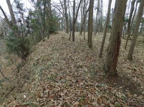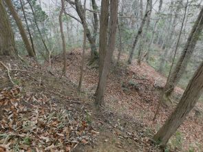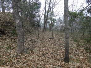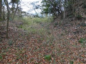 左:北西側の最高所の郭、右:北西に延びる郭間の切岸