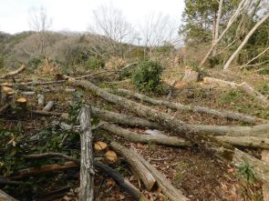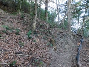 主郭南東下の堀切は、獣柵があるため手前からしか見れなかった。