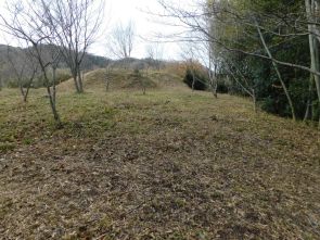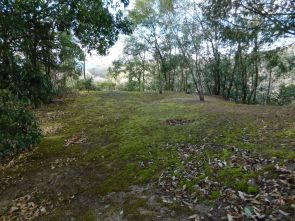 左:主郭平坦部の東側、右:西端にある畝状縦堀