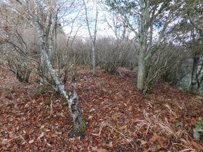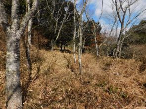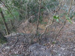 左:東麓へ下る尾根の平坦地、右:東側の登り口