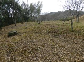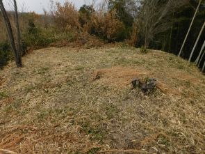 左:主郭南縁の土塁、右:主郭の平坦部と南縁の土塁