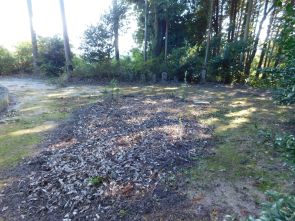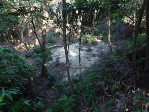 左:弾薬庫のあった方形窪地、右:待機所?の近くの割れたコンクリート床