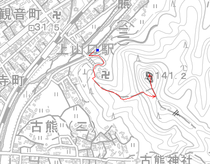 幾つか登り道があるようだが、西麓からのものが分かりやすい。幾つか郭があるようだが、堀切や土塁といった防御施設は見当たらなかった。